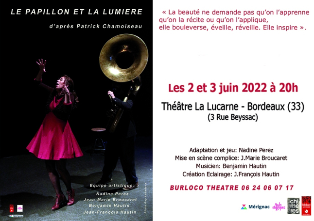 Deux représentations de LE PAPILLON ET LA LUMIÈRE au Théâtre La Lucarne à Bordeaux les 2 et 3 juin 2022 dans le cadre de la semaine de l’Amérique Latine