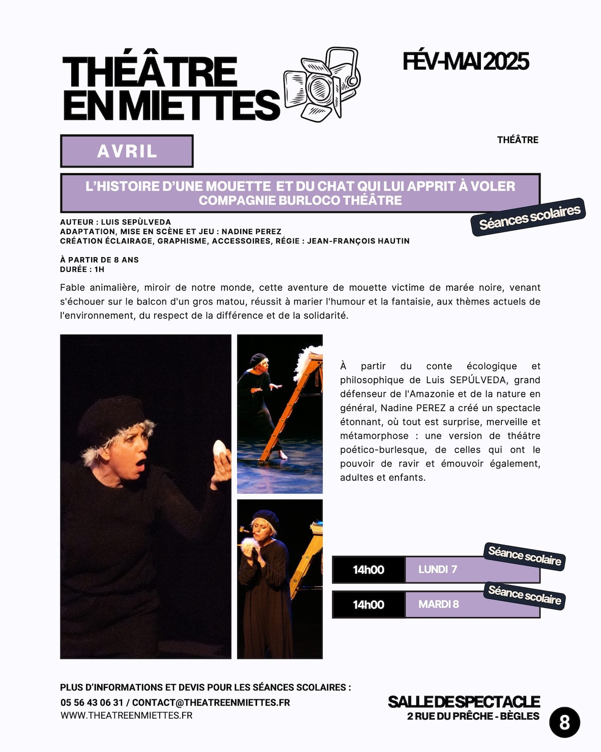 Les 7 et 8 AVRIL à BEGLES (33) au THÉÂTRE EN MIETTES à 14 h