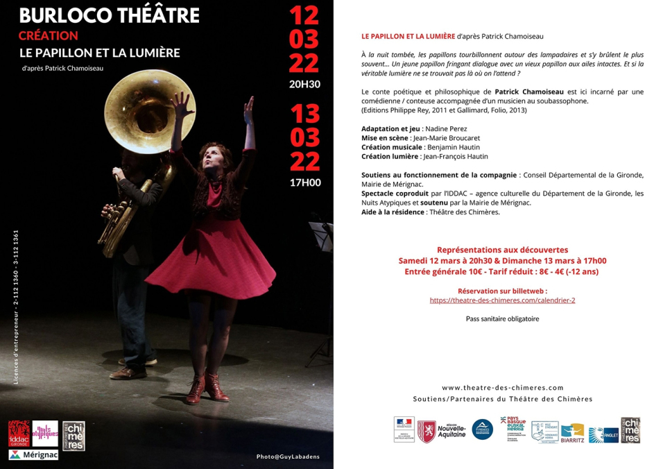 Deux représentations de LE PAPILLON ET LA LUMIÈRE au Théâtre La Lucarne à Bordeaux les 2 et 3 juin 2022 dans le cadre de la semaine de l’Amérique Latine