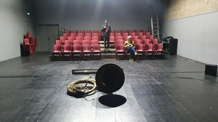 Représentation scolaire pour 200 collégiens dans la belle salle du Théâtre des Quatre Saisons à Gradignan. Une écoute attentive pendant tout le spectacle.